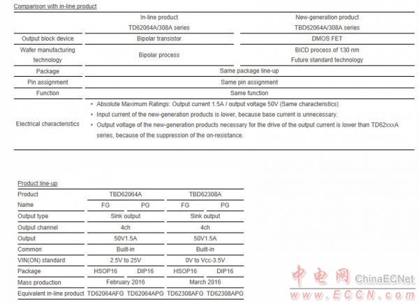 大量生產(chǎn)TBD62064A系列產(chǎn)品計(jì)劃開(kāi)始在TBD62308A系列產(chǎn)品2016年二月出貨樣品從今天開(kāi)始,已具備大批量生產(chǎn)將于2016年三月。