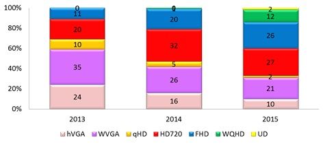 FHD(Full High Definition)即全高清,分辨率可以達(dá)到1920 x 1080。隨著消費(fèi)者對(duì)手機(jī)分辨率的要求不斷提升,一度占據(jù)手機(jī)市場(chǎng)主流的WVGA分辨率逐漸被HD720(1280 x 720)和FHD取代,手機(jī)屏幕分辨率跨入全高清時(shí)代(如上圖)。