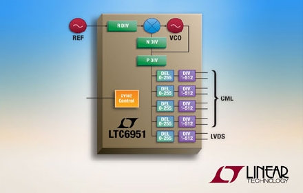 Linear推出低相位噪聲整數(shù)N合成器LTC6951,該器件集成了 VCO 和超低抖動(dòng)時(shí)鐘分配電路,非常適合為數(shù)據(jù)轉(zhuǎn)換器提供時(shí)鐘。LTC6951 提供 4 個(gè)高性能電流模式邏輯 (CML) 輸出,每個(gè)輸出都配備了一個(gè)獨(dú)立的低噪聲時(shí)鐘分頻器和數(shù)字延遲構(gòu)件,以涵蓋從 1.95MHz 到 2700MHz 的寬頻率范圍。當(dāng)以高輸入頻率和快速輸出數(shù)據(jù)傳送速率為數(shù)據(jù)轉(zhuǎn)換器提供時(shí)鐘時(shí),憑借總的115fsRMS絕對(duì)抖動(dòng) (SNR 方法),LTC6951 可提供實(shí)現(xiàn)最佳 SNR 所必需的低抖動(dòng)時(shí)鐘。