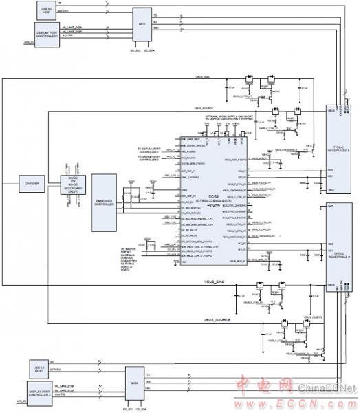 圖4.采用CYPD4225-40LQXIT的CCG4雙端口筆記本應用電路圖