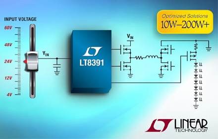 照片說明:60V 輸入 / 輸出、同步降壓-升壓型 LED 驅(qū)動器提供高達(dá) 100W 以上的 LED 功率
