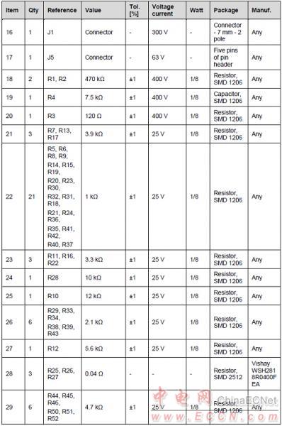 馬達控制電源板STEVAL-IPM15B材料清單: