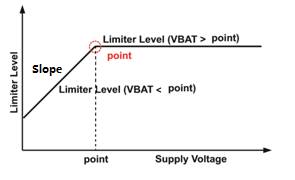 電池跟蹤功能開啟后,當(dāng)電池電壓低于設(shè)定值,HT862能隨電池電壓降低而逐步減小增益以限制電池電流,此舉進(jìn)一步支持了小容量低電流電池的應(yīng)用,并能大幅延長電池續(xù)航時(shí)間,還能防止破音和過大的電流需求,減小電池端電壓波動(dòng),降低電池在低電量時(shí)提前進(jìn)入鎖死狀態(tài)的風(fēng)險(xiǎn),示意如下圖3。其中可調(diào)整電池跟蹤拐點(diǎn)(point)、電池跟蹤斜率(Slope)。對于電池容量較小、輸出電流能力小的電池應(yīng)用,適合高point值(如3.8V)、大Slope值(如≥3V/V);而對于電池容量較大、輸出電流能力強(qiáng)的電池應(yīng)用,適合低point值(如3.3V)、小Slope值(如≤3V/V)。
