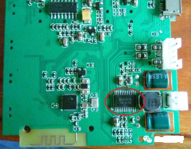 4)這種外置升壓+功放的方案,還有一個非常致命的缺陷,當鋰電池電壓降低到3.5V以下時,由于電池的電流輸出能力變差,但功放的輸出功率還是不變,按升壓IC最大12W的輸出,效率80%計算,在3.7V時對電池端的輸出電流要求是12W/0.8/3.7V=4.05A,在3.5V時,對電池端輸出電流的要求是4.3A,對K歌寶的鋰電池來說,這個電流會有非常大的壓力,品質(zhì)稍差的鋰電會導致電池電壓瞬間被拉低,致使主控IC工作不正常,出現(xiàn)宕機的現(xiàn)象。