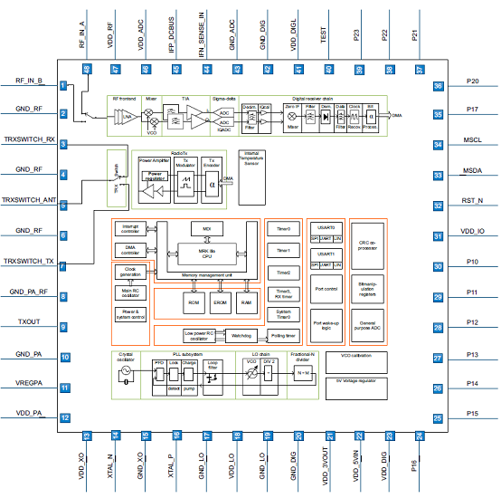 The device includes a series of timers to allow for autonomous polling and wake-up applications. The TX and RX data buffers are located in the RAM with autonomous direct memory access (DMA), reducing the ’real-time’ overhead for the accompanying micro-controller. The device can be interfaced via SPI, UART or LIN