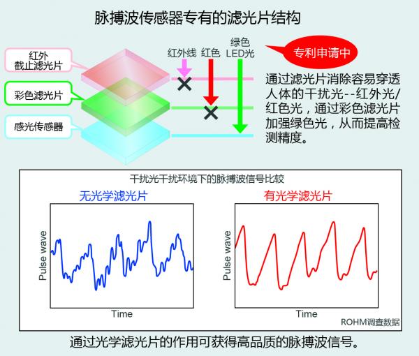 另外,“BH1790GLC”采用脈搏傳感器特有的光學濾光片結構,可高精度地檢測脈搏信號。因此,不僅使可穿戴式設備的電池壽命更長,還將紅外線的影響降低到以往產(chǎn)品的1/10以下,即使在劇烈運動和室外等紅外線較強的環(huán)境下,也可獲得高品質(zhì)的脈搏信號,有助于推動可穿戴式設備的進一步發(fā)展。