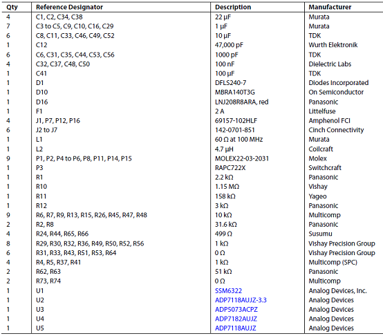評(píng)估板SSM6322CP-EBZ材料清單: