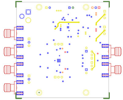 The SSM6322 evaluation board, the SSM6322CP-EBZ, evaluates the SSM6322, which is offered in a 24-lead LFCSP package. The SSM6322CP-EBZ evaluation board is a 4-layer printed circuit board (PCB) designed to quickly evaluate the performance of the device and reduce design time. The SSM6322CP-EBZ accepts SMA edge mounted connectors to test equipment or other circuitry.