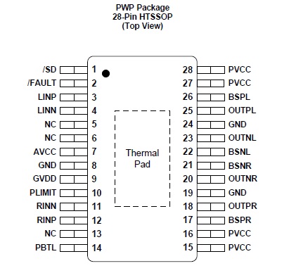 TPA3136D2/TPA3136AD2 器件可驅動阻抗低至 4Ω 的立體聲揚聲器。TPA3136D2/TPA3136AD2 的效率在負載為 8Ω 時高達 90%,無需外部散熱器,而且 TPA3136D2/TPA3136AD2 將在雙層印刷電路板 (PCB) 上實現全功率輸出。