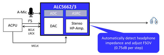 相較于其他耳機(jī)音頻解決方案,ALC5662/ALC5663提供高規(guī)格的音樂(lè)質(zhì)量,總諧波失真加噪音(THD+N)小于等于負(fù)100dB,訊噪比(SNR)小于等于負(fù)124dB,串音干擾(crosstalk)小于等于負(fù)100dB,而且耳機(jī)放大器端可以輸出2Vrms,可支持高阻抗耳機(jī)(250Ohm~600Ohm)的完美聆聽(tīng)感受。除此之外,本解決方案可進(jìn)一步進(jìn)行智能耳機(jī)偵測(cè),其中包含:耳機(jī)(3 segment)/耳麥(4 segment)辨識(shí)、10階耳機(jī)阻抗偵測(cè)(0Ohm ~50kOhm)、耳麥的4個(gè)按鈕控制(Android Wired Audio Headset Specification v1.1)以及支持OMTP/CTIA兩種腳位輸出(pinout)的耳麥。