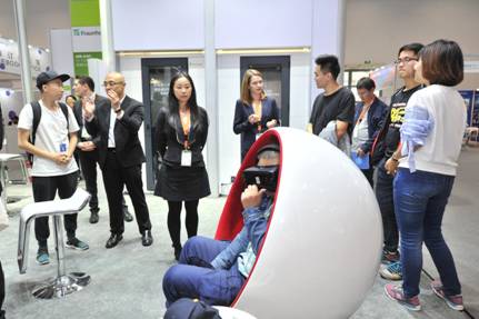 圖3:觀眾在Fraunhofer IIS展區(qū)體驗VR影片
