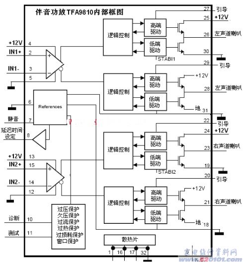 單芯片2.1音箱專(zhuān)用D類(lèi)功放IC |