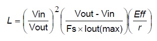 電感值計算公式,r 電感峰對峰值與電感平均電流的比例(一般設定在0.3~0.5)。舉例: