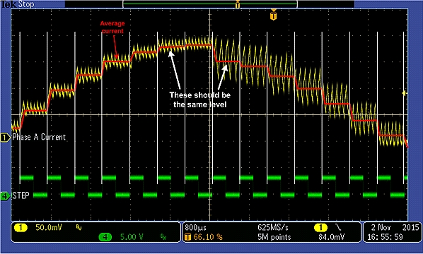 使用了這種電流調(diào)節(jié)方法,MP6500可以確保整個周期的平均繞組電流都準確穩(wěn)定(見圖8),明顯改善了電機的運行質(zhì)量。