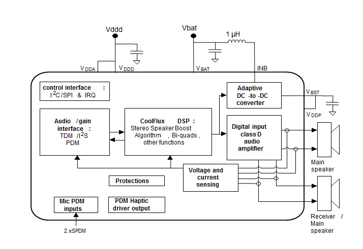 - 減少外部組件(立體聲升壓轉(zhuǎn)換器線圈)的數(shù)量,優(yōu)化PCB尺寸利用率