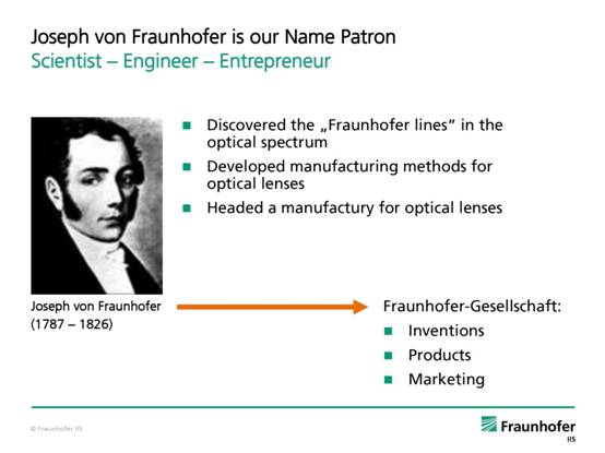 1949年創(chuàng)立于慕尼黑的Fraunhofer是世界領(lǐng)先的音頻及媒體技術(shù)研究機(jī)構(gòu),同時(shí)也是歐洲最大的應(yīng)用研究機(jī)構(gòu)!癋raunhofer”名字的由來(lái)是為了紀(jì)念德國(guó)一位物理學(xué)家Joseph von Fraunhofer先生,F(xiàn)raunhofer先生不僅深入光學(xué)研究,同時(shí)完成成品的產(chǎn)業(yè)化以及市場(chǎng)的營(yíng)銷(xiāo)。Fraunhofer正是秉承Fraunhofer先生的這種精神,不但要做好研究而且把產(chǎn)品推向市場(chǎng)。在近期舉辦的中國(guó)國(guó)際廣播電視信息網(wǎng)絡(luò)展覽會(huì)上,F(xiàn)raunhofer集成電路研究所亞太區(qū)市場(chǎng)及業(yè)務(wù)發(fā)展總監(jiān)Toni Fiedler先生向記者朋友分享了Fraunhofer的古往今來(lái)。