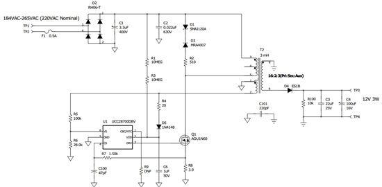 在電子儀表計量等特定應(yīng)用中,無需隔離,而且反激式轉(zhuǎn)換器中的定制變壓器對于成本敏感型市場來說太貴。在這種情況下,降壓轉(zhuǎn)換器(如圖 3 中的 PMP9087)是實現(xiàn)低成本偏置電源解決方案的更好選項,因為使用的是標(biāo)準(zhǔn)電感器。此外,使用 PSR 控制器(UCC28700 系列)還可實現(xiàn)快速負載瞬態(tài)響應(yīng),因為 PSR 控制器具有逐周期電壓傳感特性。