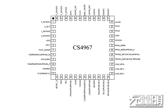 CS4967采用QFN48封裝,節(jié)約布板面積,工作溫度范圍為 -40°C至85°C,集成了所有控制功能,可以最大限度地減少外部元器件,節(jié)約成本。