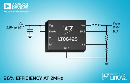 Analog Devices (ADI)宣布推出Power by Linear™LT8642S,這是一款 10A、18V 輸入同步降壓型開(kāi)關(guān)穩(wěn)壓器。其 Silent Switcher® 2 架構(gòu)采用兩個(gè)內(nèi)部輸入電容器以及內(nèi)部 BST 和 INTVCC電容器,以最大限度減小熱環(huán)路面積。LT8642S 具有受控的開(kāi)關(guān)邊沿以及用銅柱代替接合線的內(nèi)部結(jié)構(gòu)和整體接地平面,因而極大地降低了 EMI 輻射。這種更好的 EMI 性能對(duì) PCB 布局不敏感,從而簡(jiǎn)化了設(shè)計(jì)并降低了風(fēng)險(xiǎn),甚至在使用兩層 PC 板時(shí)也不例外。LT8642S 憑借 2MHz 開(kāi)關(guān)頻率,可在其整個(gè)負(fù)載范圍內(nèi)很容易地滿足汽車(chē) CISPR 25 5 類(lèi)峰值 EMI 限制。該器件還提供擴(kuò)展頻譜頻率調(diào)制,以進(jìn)一步降低 EMI 水平。