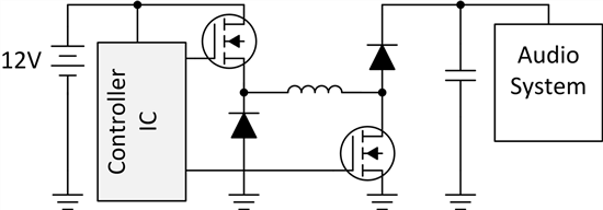 假設(shè)我們正在設(shè)計(jì)一款由12V鉛酸電池直接供電的12V汽車音響系統(tǒng)。如何使音響系統(tǒng)保持恒定的輸入電壓?記住,如上所述,電池電壓的波動(dòng)范圍可達(dá)3V至16V。降壓轉(zhuǎn)換器有用嗎?不行。當(dāng)電池電壓低于12V時(shí),音響系統(tǒng)的輸入將下降,可能會(huì)導(dǎo)致欠壓狀態(tài)。我們來試一下升壓轉(zhuǎn)換器。還是不行。當(dāng)電池電壓大于12V時(shí),音響系統(tǒng)的輸入將上升,可能導(dǎo)致過電壓狀態(tài)并損壞電子設(shè)備。我們需要的是降壓 - 升壓轉(zhuǎn)換器。顧名思義,無論輸入電壓如何,該拓?fù)涠伎梢越祲夯蛏龎旱椒(wěn)定的輸出電壓。最重要的是,即使電壓波動(dòng),它也能提供恒定的能量。圖2所示為降壓拓?fù)涞暮唵渭?jí)聯(lián)升壓。