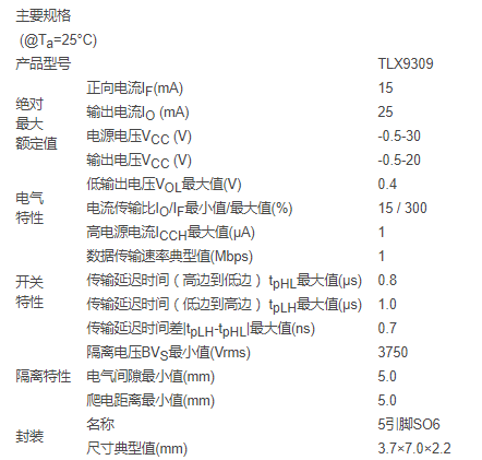 該產(chǎn)品采用獨立的光電二極管和放大晶體管,降低了集電極電容,從而縮短傳輸延遲,使得集電極開路型TLX9309的傳輸速度快于晶體管輸出型器件。實際上,傳輸延遲時間穩(wěn)定在0.1μs到1.0μs之間,其中由高至低轉(zhuǎn)換和由低至高轉(zhuǎn)換延遲時間差(|tpLH-tpHL|)不高于0.7μs,因此,該器件適用于逆變器控制或智能功率模塊(IPM)接口等高速通信應(yīng)用。