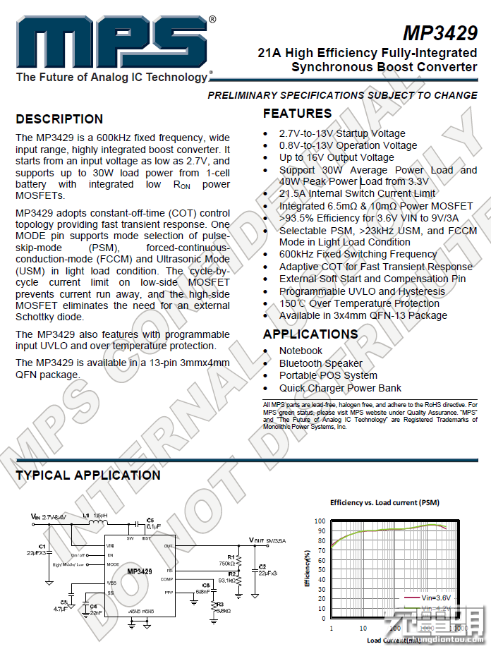 輸入電壓范圍:2.7V -14 V;輸出電壓范圍:4.5V-20V