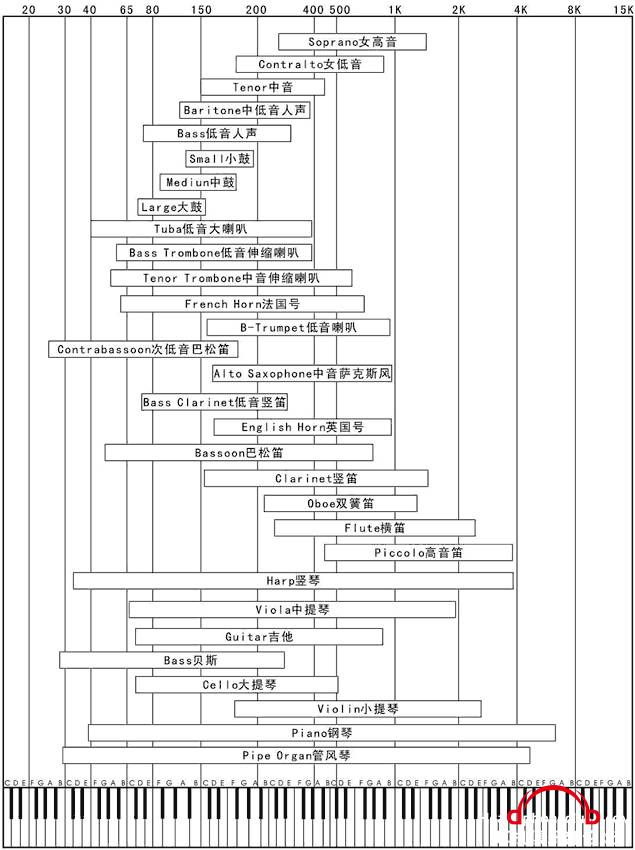 耳機(jī)算是整個(gè)高保真回放系統(tǒng)中失真最大的部分了,高保真轉(zhuǎn)盤、解碼、耳放失真都挺小的。下面是各種聲源的頻率范圍