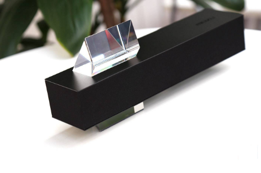 現(xiàn)在市面上已經(jīng)有不少通過磁力實(shí)現(xiàn)的懸浮音箱,不過Gravity的“懸浮”還是有所不同的。結(jié)構(gòu)上,Gravity由長條狀的腔體和透明棱鏡(PMMA有機(jī)玻璃材質(zhì))組成,正是這塊棱鏡的加入為它增加了“懸浮”的視覺效果。