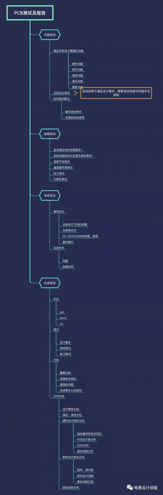 下面的一張圖是PCB的測試及項(xiàng)目報(bào)告。雖然整個(gè)板子能夠工作正常,但不意味著你的板子滿足當(dāng)初的設(shè)計(jì)要求,也就是從功能上要完全實(shí)現(xiàn),從性能方面要完全滿足,這里的測試僅僅還是在實(shí)驗(yàn)室里面的樣機(jī)系統(tǒng),如果作為產(chǎn)品會(huì)有更多的測試條目,測試過程也會(huì)更加嚴(yán)苛,因?yàn)槲覀兌鄶?shù)都是研發(fā)工程師,主要面對的都是實(shí)驗(yàn)室的樣機(jī),因此在這里僅把這一個(gè)階段的工作整理了一下。最后的總結(jié)報(bào)告非常重要,不僅是為了給你的老板報(bào)告、給你的同事做分享,更重要的是讓自己有一個(gè)更認(rèn)真、完整的回顧。