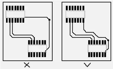 即短線規(guī)則,在設計時應該盡量讓布線長度盡量短,以減少由于走線過長帶來的干擾問題,特別是一些重要信號線,如時鐘線,務必將其振蕩器放在離器件很近的地方。對驅動多個器件的情況,應根據(jù)具體情況決定采用何種網(wǎng)絡拓撲結構。