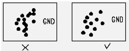 對于導通孔密集的區(qū)域,要注意避免孔在電源和地層的挖空區(qū)域相互連接,形成對平面層的分割,從而破壞平面層的完整性,并進而導致信號線在地層的回路面積增大。