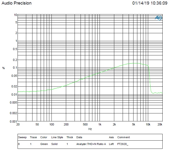 低頻FT2920比HT862T失真度。恢蓄l兩者接近;高頻HT862T比FT2920好。全頻段HT862T失真在0.04%以內(nèi),F(xiàn)T2920失真度超過0.1%;