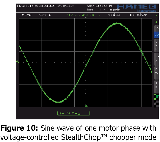 圖10和圖11顯示 電壓控制模式的Stealthchop 和電流控制模式的SpreadCycle