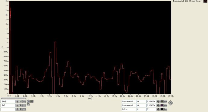 揚(yáng)聲器的相對(duì)相移曲線中的相位波動(dòng),往往和幅頻曲線的波動(dòng)是一一對(duì)應(yīng)的。揚(yáng)聲器單元作為一個(gè)最小相位系統(tǒng),其不帶群延時(shí)的相頻特性可以由其幅頻經(jīng)希伯特轉(zhuǎn)換而得到。這些波動(dòng),往往會(huì)成為揚(yáng)聲器音色改變的一個(gè)標(biāo)志。例如上圖中,群延遲曲線、幅度曲線、相位曲線中表征的5-6KHz之間的波動(dòng)。