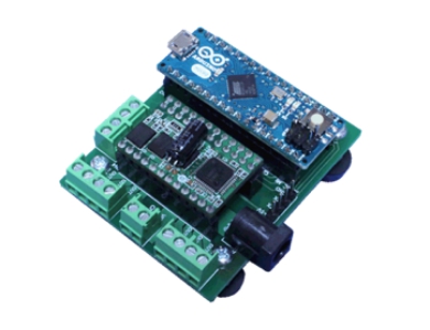 插件電機(jī)驅(qū)動(dòng)模塊提供預(yù)先設(shè)計(jì)的硬件作為模塊,基于開放源碼架構(gòu),可隨時(shí)進(jìn)行定制。主機(jī)PC與Arduino MICRO* 1之間的USB聯(lián)接使DC電機(jī)能使用串行通信控制。開發(fā)環(huán)境包括運(yùn)行Arduino IDE 1.8.4的Windows PC、基板和AC適配器,輸出電壓4V至16V,輸出電流約2A。該軟件包括一個(gè)應(yīng)用編程接口(API)庫(kù)和對(duì)設(shè)計(jì)人員最重要的強(qiáng)大的圖形用戶接口(GUI),能自動(dòng)生成Arduino代碼,可導(dǎo)出為Arduino Sketch (.ino)文件。此代碼也可以與Arduino IDE一起使用。
