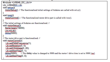 由于開發(fā)套件可支持基于不同類型電機(jī)的設(shè)計(jì),用戶可以看到安森美半導(dǎo)體的電機(jī)方案GUI為與所用電機(jī)類型相匹配而改變。GUI支持簡(jiǎn)單的參數(shù)設(shè)置和電機(jī)驅(qū)動(dòng)器IC的配置,而不需要經(jīng)常參考說明書。實(shí)際應(yīng)用是,開發(fā)人員可以在沒有深入了解所用電機(jī)的情況下進(jìn)行設(shè)計(jì)。這加速了電機(jī)控制的設(shè)計(jì)進(jìn)程,得益于一個(gè)快速高效的開發(fā)環(huán)境。例如,僅通過設(shè)置目標(biāo)速度,就可以使用電機(jī)驅(qū)動(dòng)API函數(shù)庫(kù)“setTargetDrive()”來控制LV8548有刷直流電機(jī)控制驅(qū)動(dòng)器。