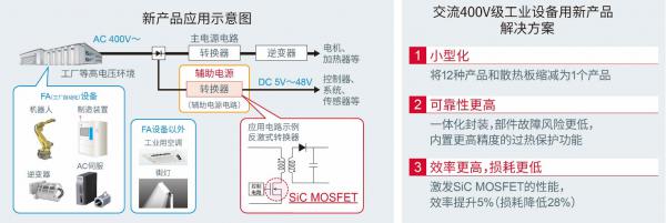 近年來,隨著節(jié)能意識(shí)的提高,在交流400V工業(yè)設(shè)備領(lǐng)域,相比現(xiàn)有的Si功率半導(dǎo)體,可支持更高電壓、更節(jié)能、更小型的SiC功率半導(dǎo)體的應(yīng)用越來越廣。而另一方面,在工業(yè)設(shè)備中,除了主電源電路之外,還內(nèi)置有為各種控制系統(tǒng)提供電源電壓的輔助電源,輔助電源中廣泛采用了耐壓較低的Si-MOSFET和損耗較大的IGBT,在節(jié)能方面存在很大課題。
