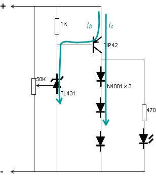 如果電池兩端小于4.2V,TL431不吸收電流,即下面的Ib=0,所以Ic=0,三級(jí)管關(guān)閉,充電電流就還是通過(guò)電池。