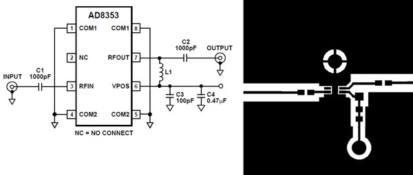 ADI公司AD8353ACPZ-REEL7是一款基本輸入/輸出兩級反饋放大器,結構緊湊8-VFDFN封裝,帶有裸露焊盤。它針對蜂窩,LMDS和MMDS設計。良好的1 MHz至2.7 GHz,它是一個相當寬的放大器,能夠運行標準的3或5 V電源,并提供固定的20 dB增益。其緊湊的尺寸和簡單的“直通”布局使其可以輕松放置在自己的地平面上(圖2)。
