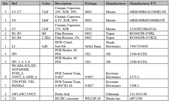 評(píng)估板AP72200-EVM材料清單: