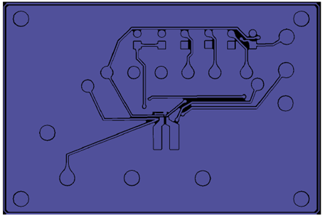 圖6.評(píng)估板AP72200-EVM PCB設(shè)計(jì)圖:底層 |