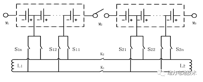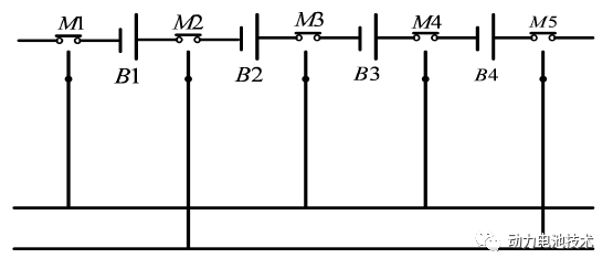 如下圖所示的并聯(lián)拓撲結(jié)構(gòu),每節(jié)單體電池都有一個單刀雙擲的開關(guān)繼電器,所以 n 節(jié)串聯(lián)電池組內(nèi)需要 n+1 個繼電器。