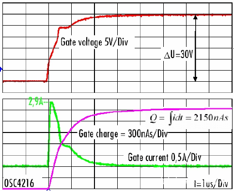 Qg和ΔU可以通過示波器測得:Qg=2150nC,ΔU=30V