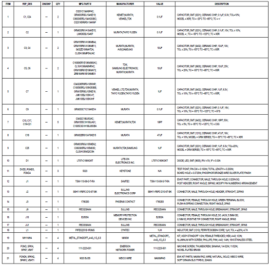 評估系統(tǒng)MAX98390 EVS材料清單: