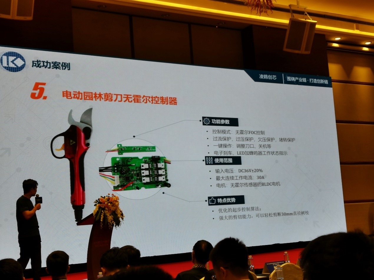 圖5:凌鷗創(chuàng)芯CEO李鵬在介紹其無霍爾槍鉆控制方案。