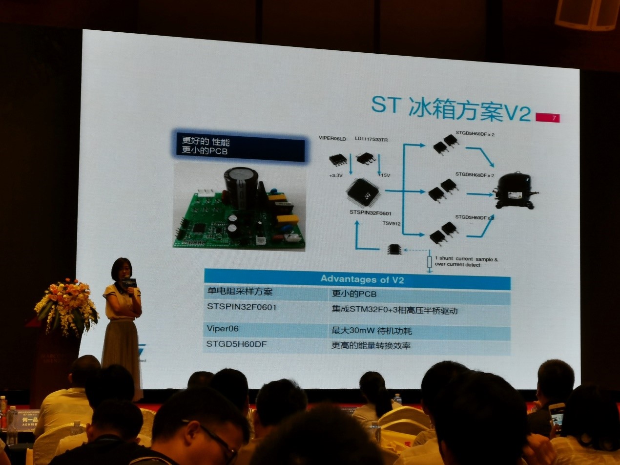 比如說ST推出的冰箱方案,采用了STSPIN系列MCU和STGD5H60DF驅(qū)動新品,可實現(xiàn)30mW的待機功耗。
