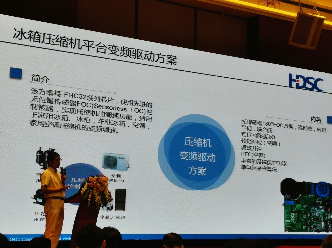 國產(chǎn)芯片廠商華大半導(dǎo)體也推出了其冰箱壓縮機平臺變頻驅(qū)動方案,該方案采用了基于HC32系列芯片,使用了無位置傳感器FOC控制策略,可實現(xiàn)壓縮機的調(diào)速功能。