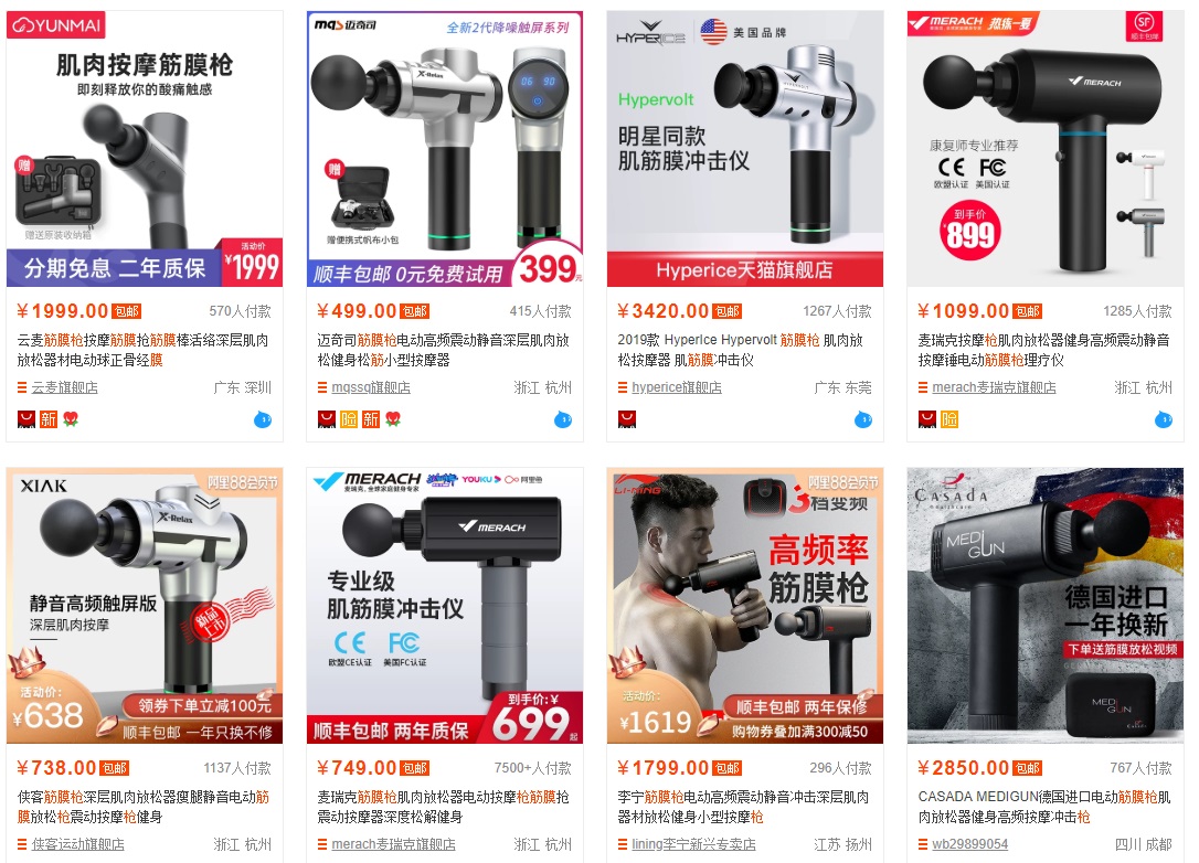 不過現(xiàn)在筋膜槍的水也很深,雖然外形看起來都差不多,但價格從100多元的到3000多元的都有。