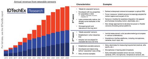 2015年~2028年三波浪潮中的可穿戴傳感器