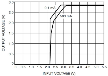 LDO的輸入電壓和輸出電壓的差值就是LDO的壓差。在一定的負(fù)載電流下,LDO以最小的輸入電壓維持正常的輸出電壓,此時輸入電壓與輸出電壓的差稱為最小壓差。LDO在不同的負(fù)載電流下有著不同的最小壓差。為了保證輸出電壓的穩(wěn)定,在實(shí)際應(yīng)用中需要根據(jù)負(fù)載電流的大小來判斷保證正常的輸出電壓所需的最小壓差。LDO的壓差決定了它的工作電壓范圍,低壓差的LDO則可以接受更低的工作電壓,應(yīng)用在輸入電壓更低的場合,并且降低了耗散功率,提高了效率。圖1是某LDO壓差特性曲線,該LDO標(biāo)稱輸出電壓為2.8V,從圖中可以看出,輸出電流為500mA時,輸入電壓至少要為3.2V以上才能維持正常的2.8V電壓輸出。
